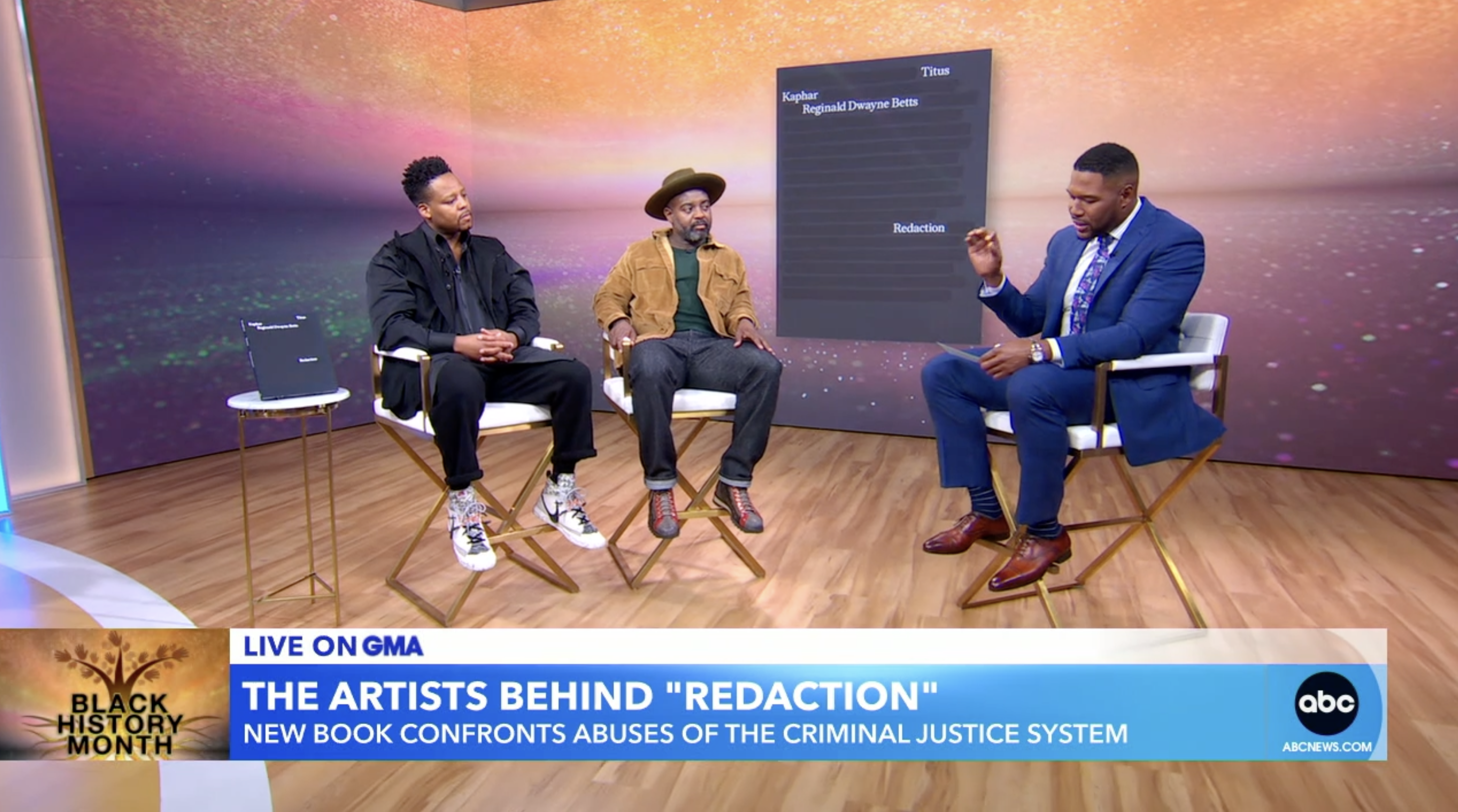 Michael Strahan chats with artist Titus Kaphar and poet and Freedom Reads Founder & CEO Reginald Dwyane Betts on their recent art book, Redaction.